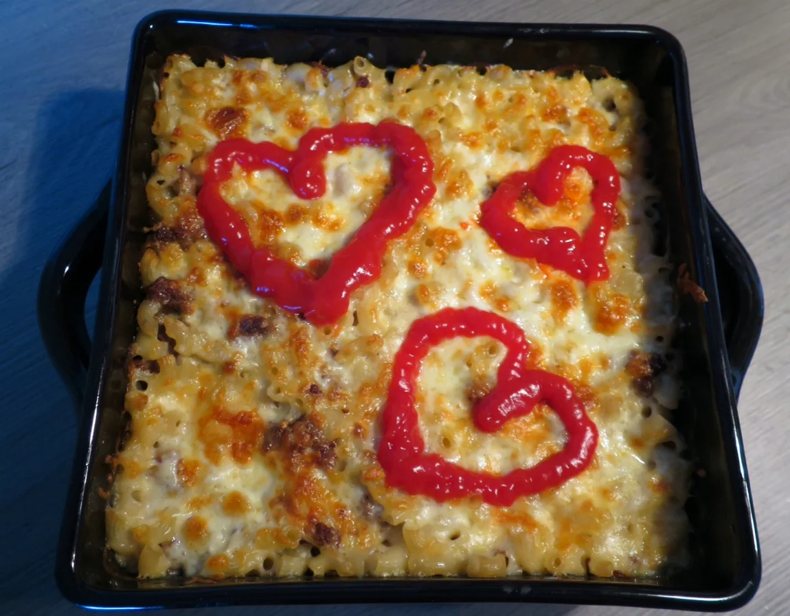 Kolmas vihjeeni tulee tässä; en laita kananmunaa makaroonilootaani. Sen sijaan paljon juustoraastetta. Raastan lootaan sitä juustoa mitä meillä on, yleensä Oltermannia, Edamia tai Emmentalia. Lootan päälle laitan yleensä raasteena mozzarellaa. Neljäs vihjeeni; en koskaan kaada makaronien keitinlientä (lihalientä) kokonaan pois, vaan jätän sitä vähän ja kaadan makaroonit liemineen uunivuokaan. Tässä kuva lootastani, joka on tymäkkä ilman kananmunejakin! Salaisuus on on sata astetta ja pitkä haudutusmuhitus uunissa.