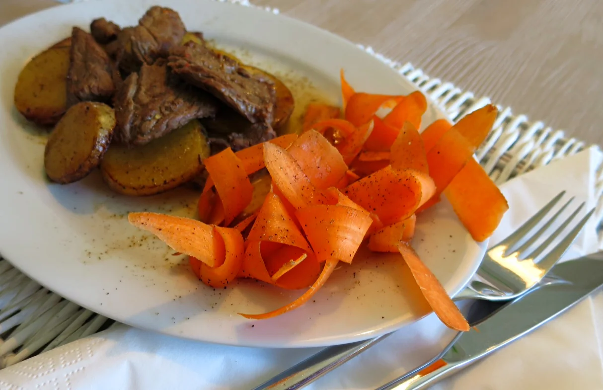 Porkkanat kuorin ja samalla vihanneskuorijalla myös vetelin lastuja, joihin tein yksinkertaisen solmun. Merimiessolmua pohdin, ei taidot riitä. Raastetta oli ajatus tehdä. Hauskemmalta solmut näyttävät. Idea toimii myös kesäkurpitsan kanssa. Solmu ei mennyt miksikään, vaikka pikkasen kesäkurpitsalle näytin paistinpannua ja voita. Pikkasen vaan.