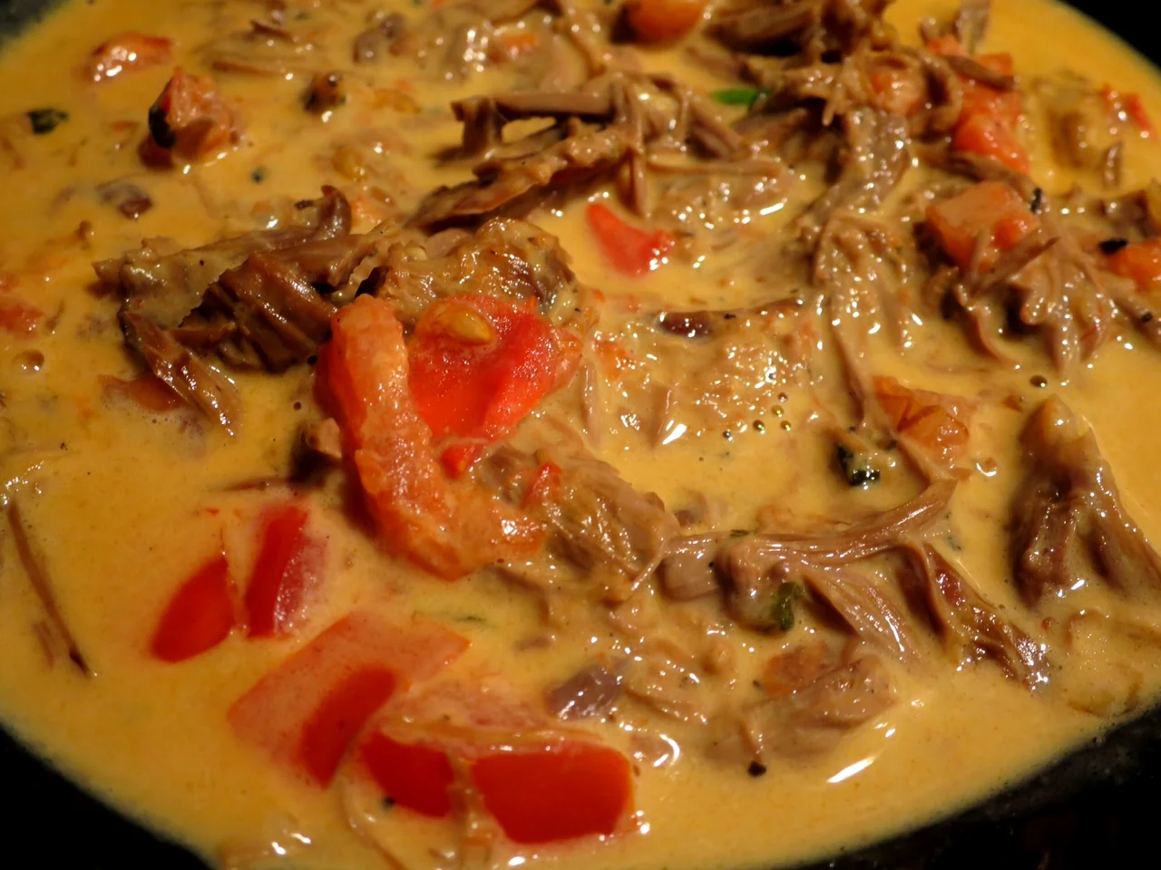 Seuraavana päivänä lämmitin kermapurkallisen pannulla pienellä höökillä. Lisäsin lämpöön nyhtökaritsaa. Pilkoin mukaan kaksi tomaattia. Mahtavan raikas ja pirteä lisä. Tomaatti <3