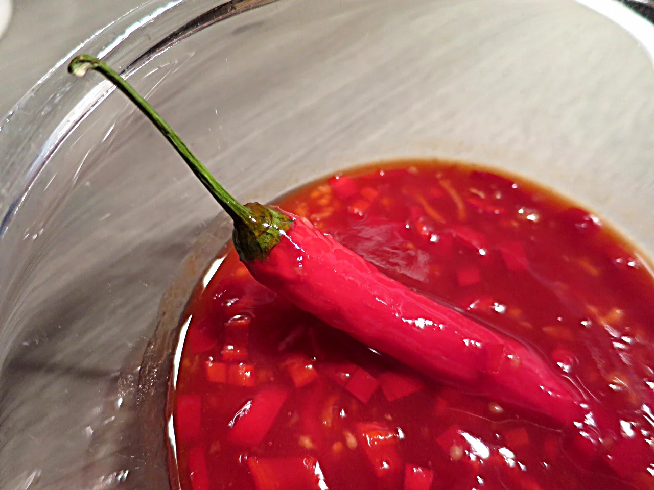 Makustelin mielessäni. Päädyin ratkaisuun; makeaa, hapanta, tulista ja tasoittavaa makeahkoon viittavaa, mutta kuitenkin vähän hapahkoa, voimakasta aromia = makeantulinen marinadi jolla saadaan karkkia kanasta. Tosi selkeää! Mittamääräsuhteisia jumppasinpumppasin, maistelin. Loksahti lopulta.