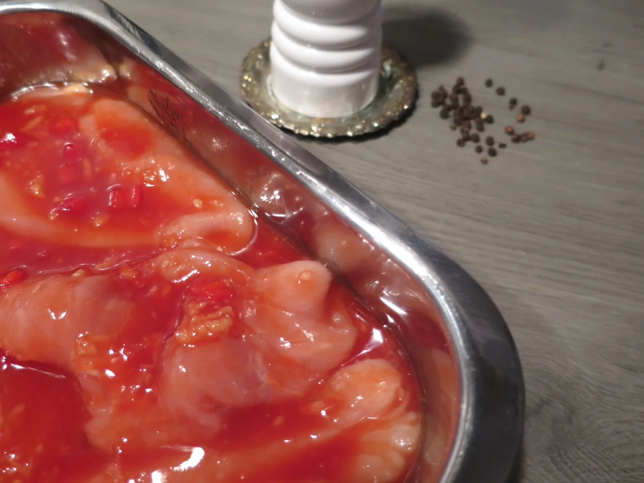 800g ilmoitettiin paketissa kananpojan ohuita pihvejä. Sille määrälle touhusin karkkimarsku-marinadisen: