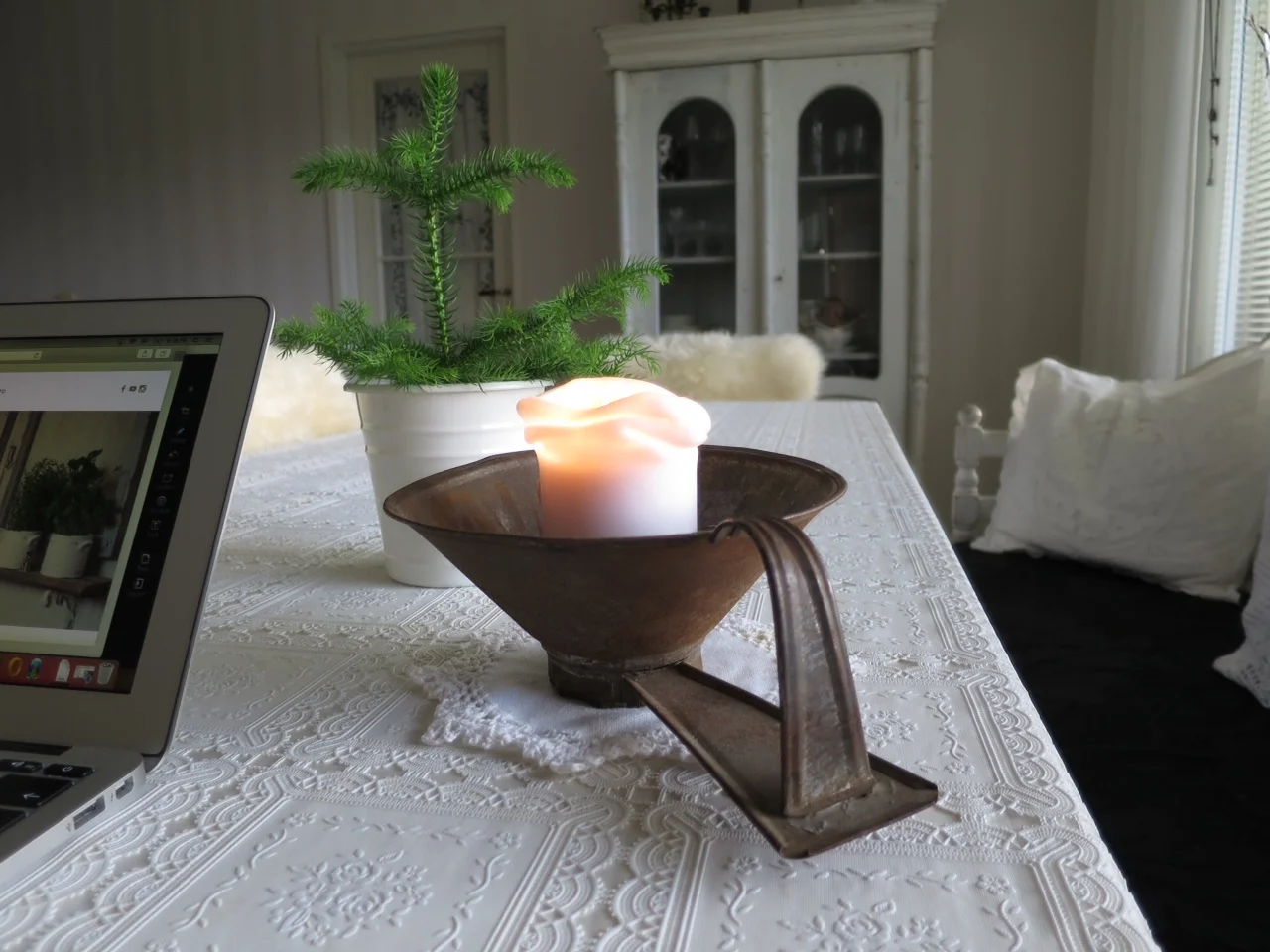 Tuleva työhuoneeni, Rouva Ässän sydänluola, on vielä remontissa. Kirjoittelen juttujani, touhujani ruokapöydän ääressä. Aloitankin Joulutouhut tästä.