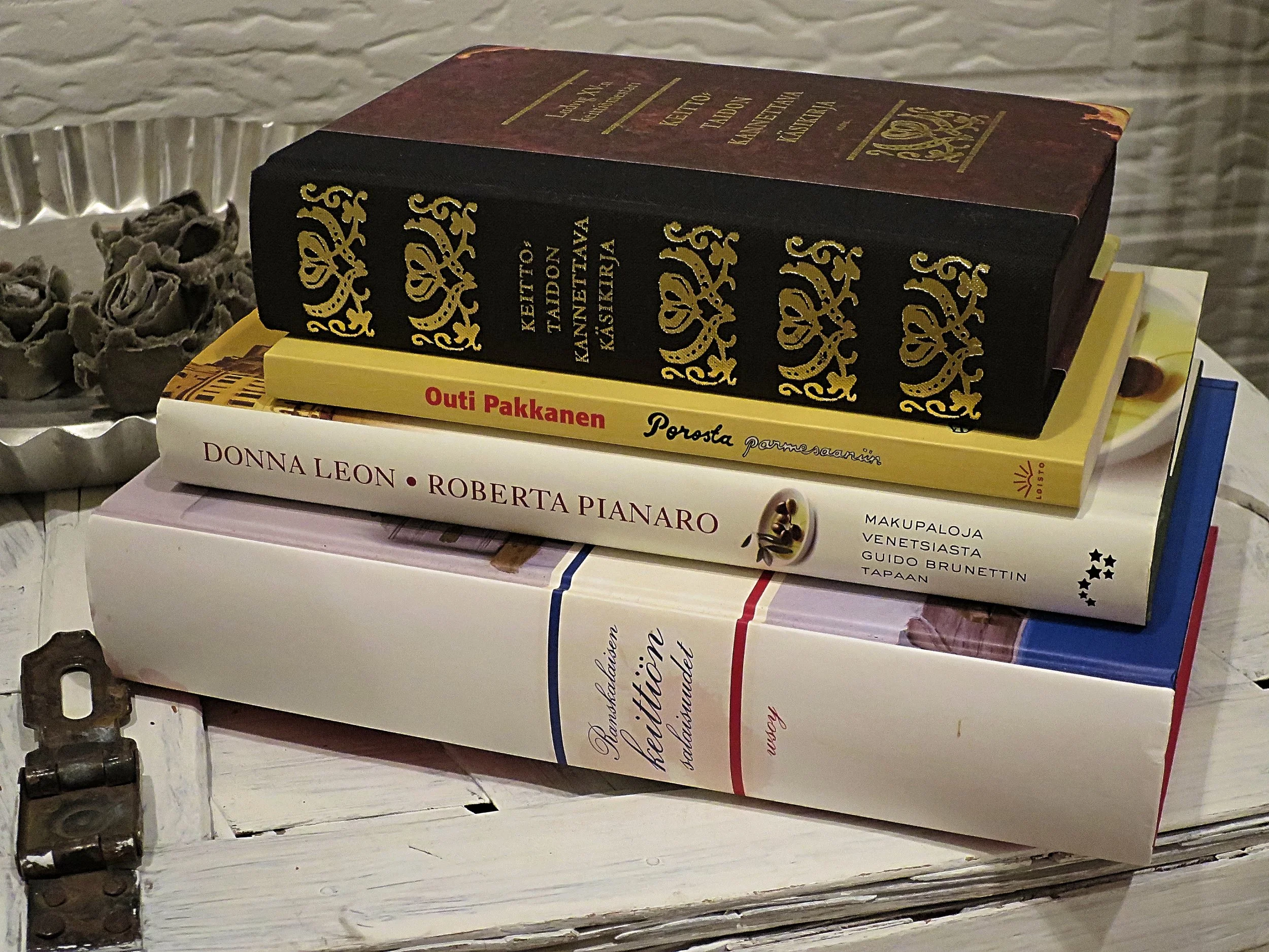Olin ihan varma, että olen poiminut tämän ohjeisen Outi Pakkasen dekkarihahmo Anna Laineen keittokirjasta Porosta parmesaaniin. Selasin kirjaa nyt bloksua tehdessä. Eipäs vaan ollutkaan. Ohjeinen siellä. Varma olin! Vaihtis oli sitten Donna Leonin dekkarihahmo Guido Brunettin Paola- vaimon ohje. Kirjasta Makupaloja Venetsiasta Guido Brunettin tapaan ( Donna Leon/ Roberta Pianaro). Vaan eipä ollut siinäkään kirjassa.... Hmmmh.... Jostain tämän bongannut olen, se on varmaa se.