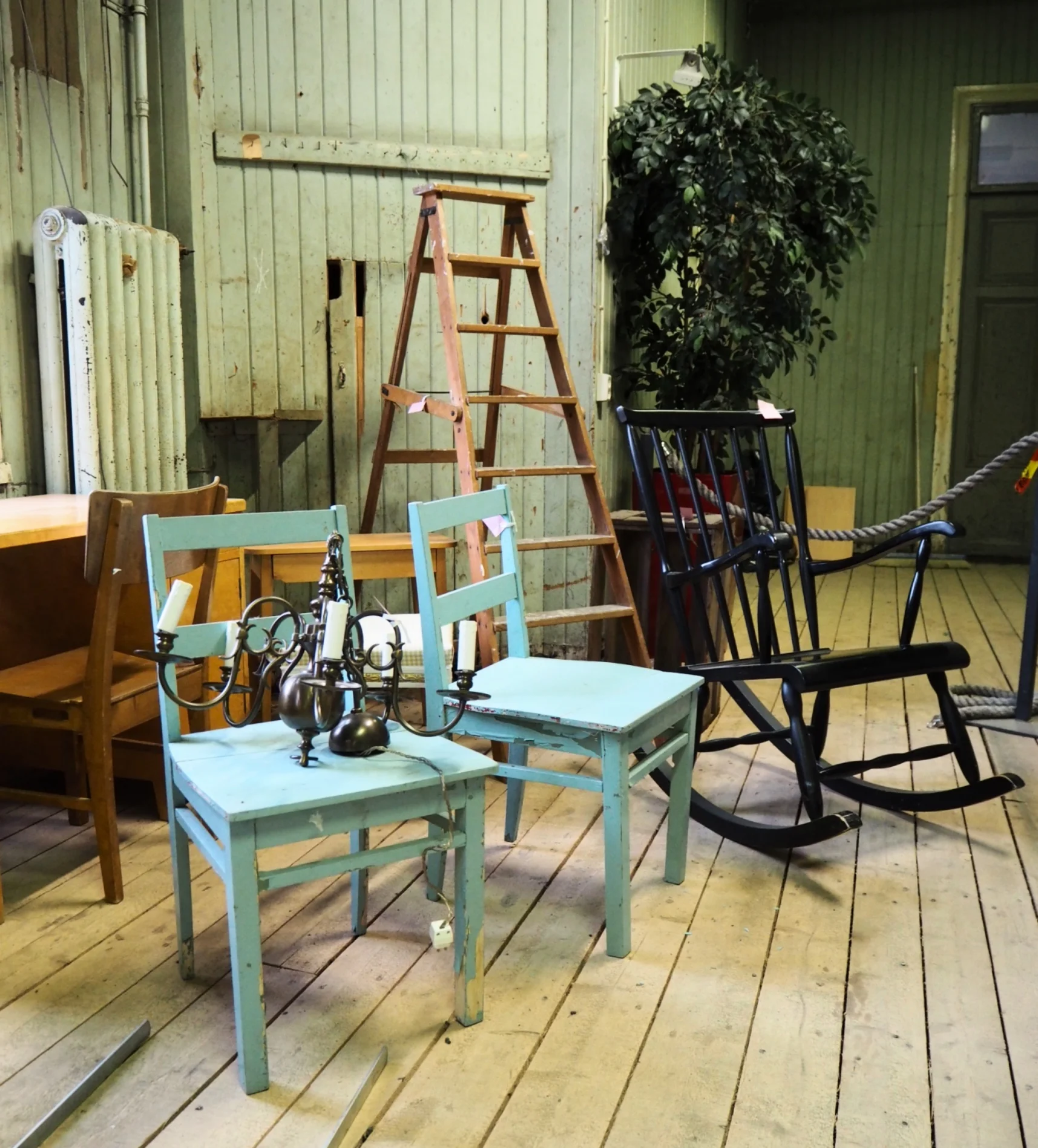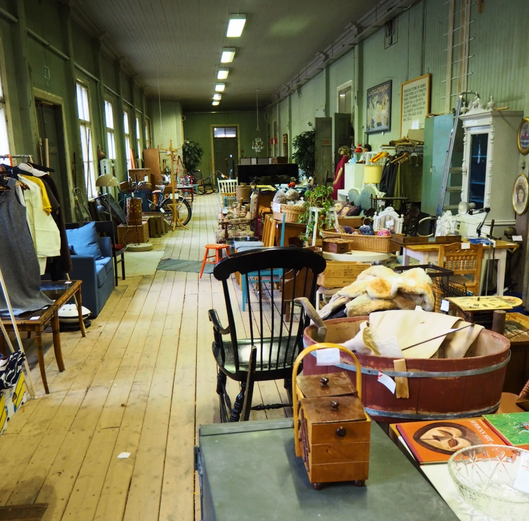 Miljöö on ihana ja historiaa huokuva. Syksyinen päivä kun kävimme kirpparilla oli pimeä ja no, sellainen ankea. Se ankeus kyllä väistyi samantien kun avasimme kirpparin oven.