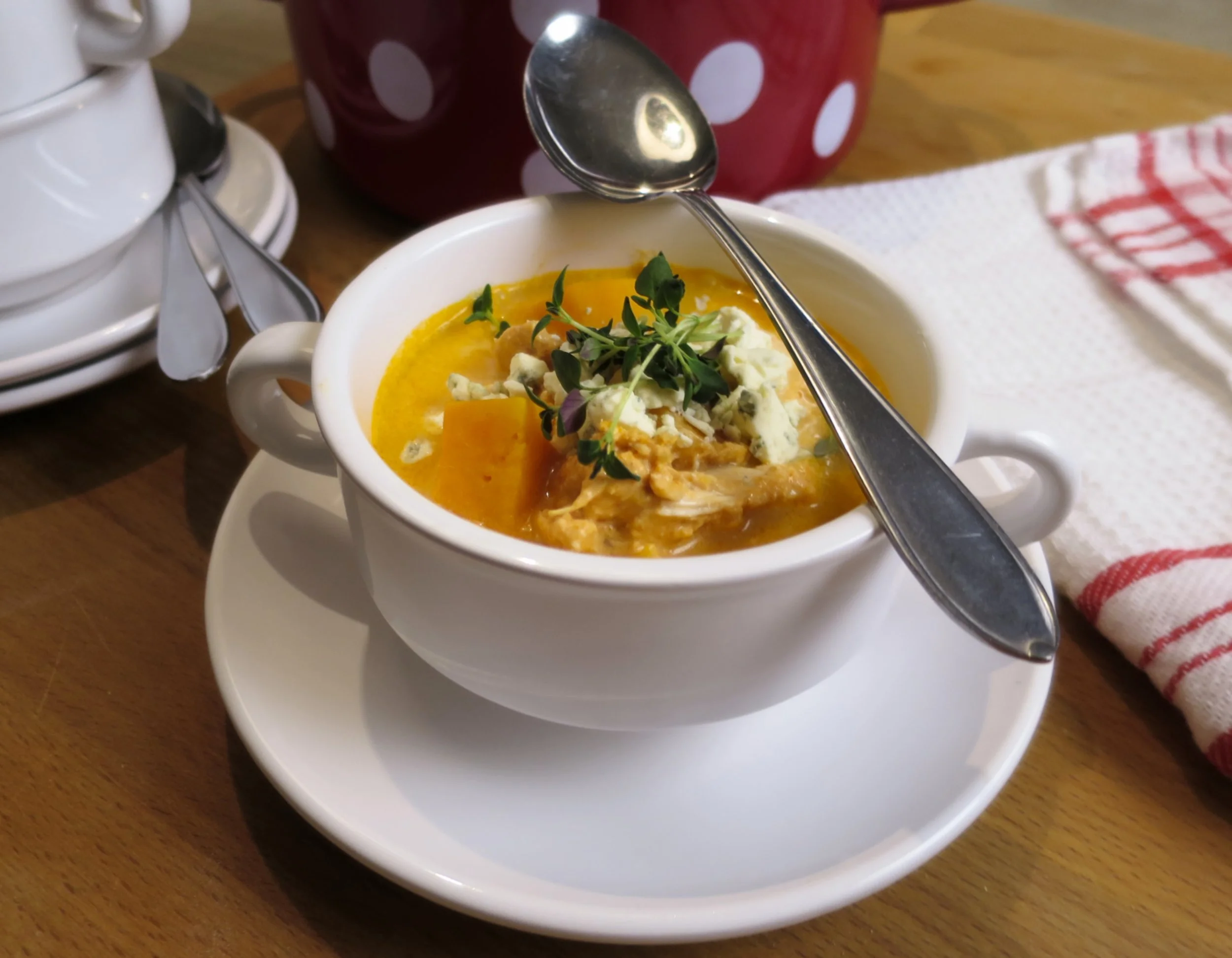 Tämä on ihana keitto. Suolainen. Makea. Kermainen. Ei keveä. Mutta aikalailla hyvin hiilarein. Ketsuppi sopii ihanasti mukaan!