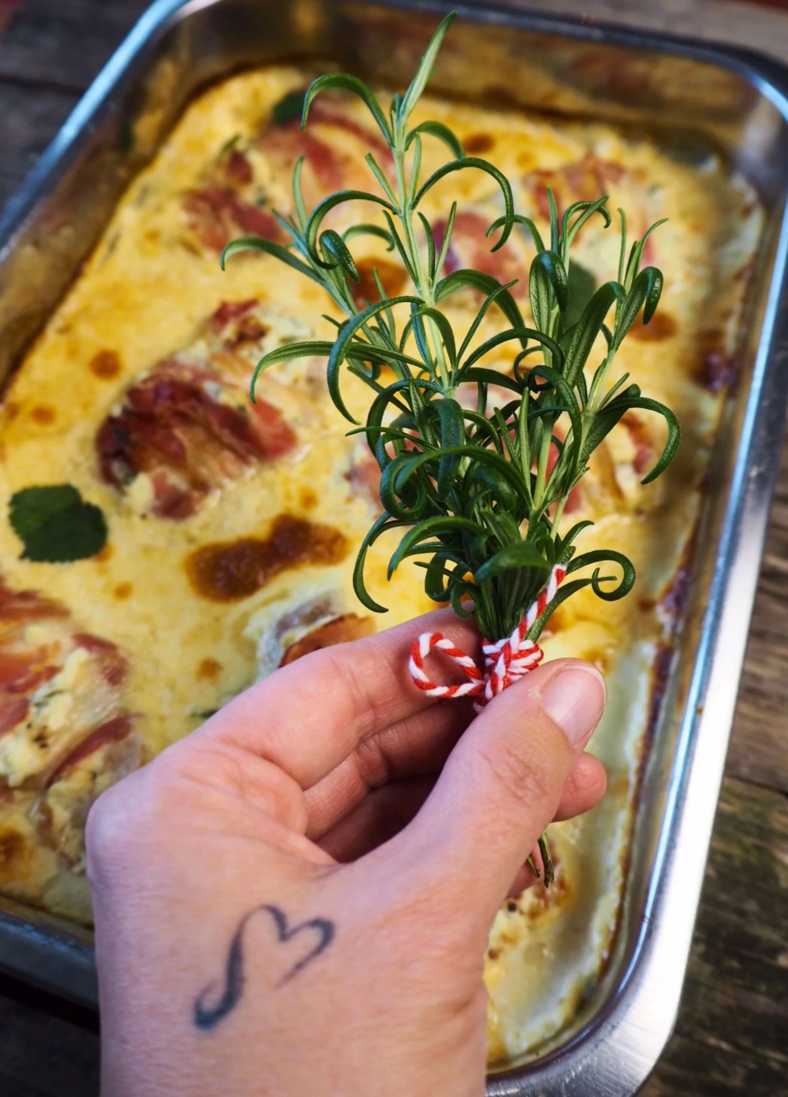 Mistelioksan itse tein. Rosmariinia niputin. Heiluskelin hetken nippuni kanssa kunnes Herra Ässä oivalsi pusuja minun jahtaavan.