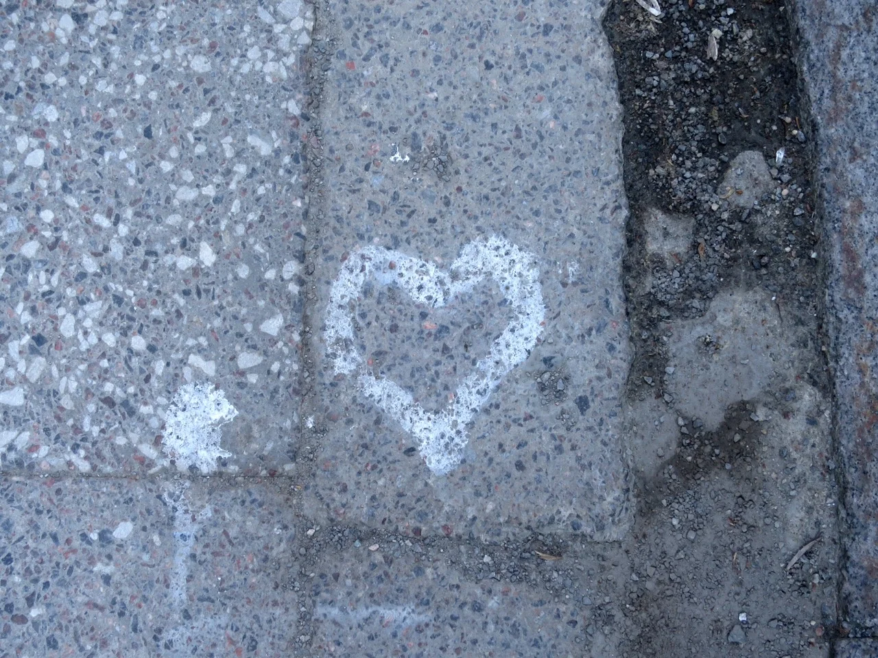Sydän. Nehän minä aina huomaan. Tämäkin sydän oli katukiveykseen piirretty. Mikähän on tarina sen takana? Koska en saa tietää, kuvittelin itse.