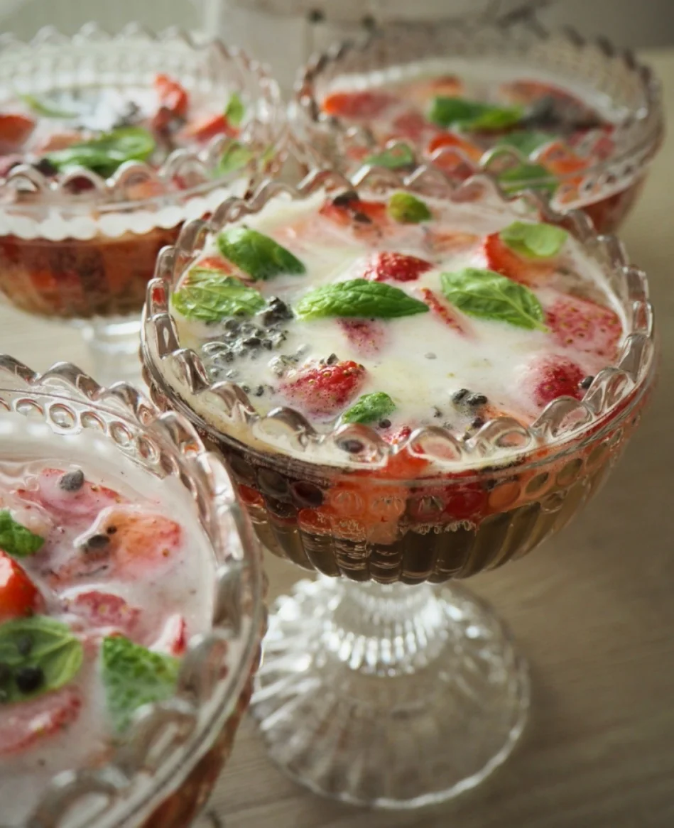 Hyydytä jääkaapissa vähintään 6 tuntia. Tarjoile kylmänä.