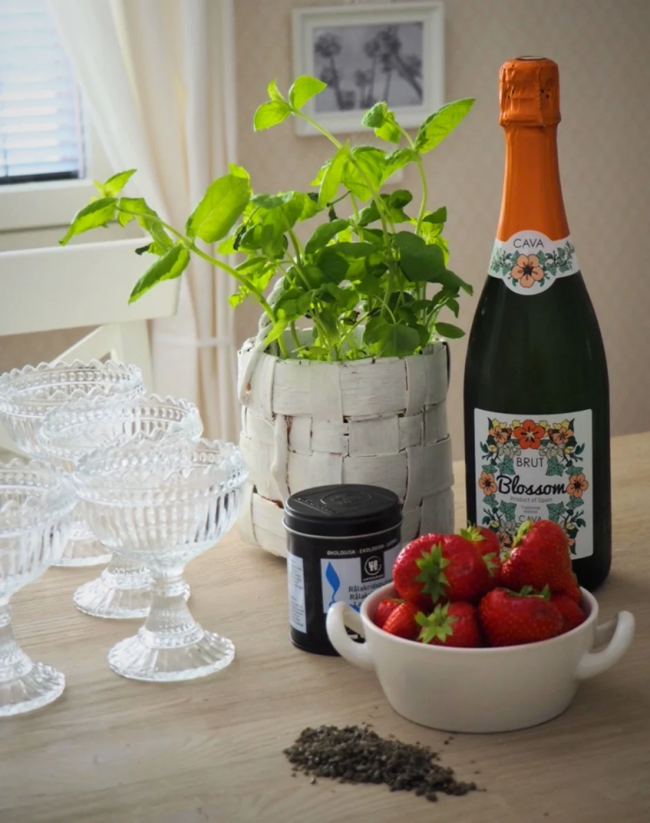 Alkuperä reseptilleni on bongattu vuosia sitten Alkon asiakaslehdestä. Kirjasin ylös. Kokeilin. Tylsä oli. Syystä unohtui ohje kaapin perälle. Nyt sen muistin. Ajatus kun on kiva; kuohuviinihyytskä hyytelöinen.