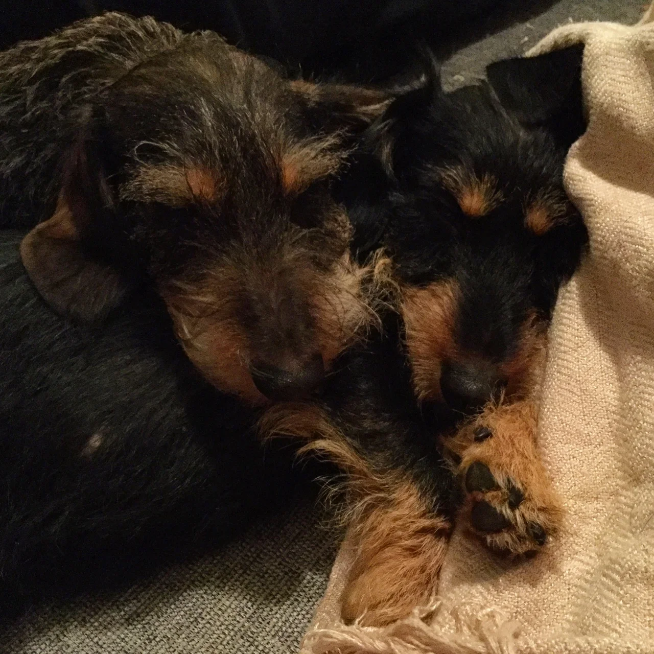 Keittelin tuossa kahvit. Päiväkahveja tässä seurassani omassa pitelen. Tai siis no, en tässä yksin ole, vaan tällaiset kamuset, mäyrinkäisneitiset tulivat päikkäreille vierelleni sohvalle. Onni on ihanut neidit; Kerttu ja Hilkka.