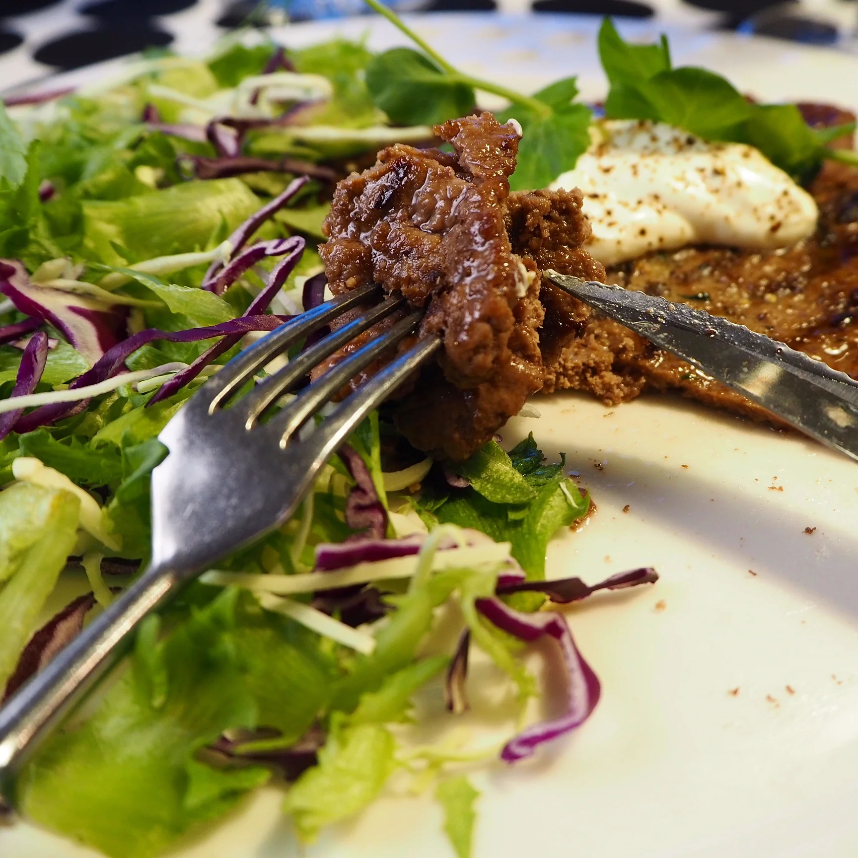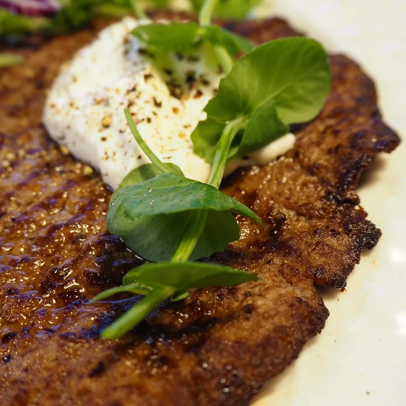 Mausta paistettu pihvi suolalla ja mustapippurilla, ja muilla mausteilla jos haluat.