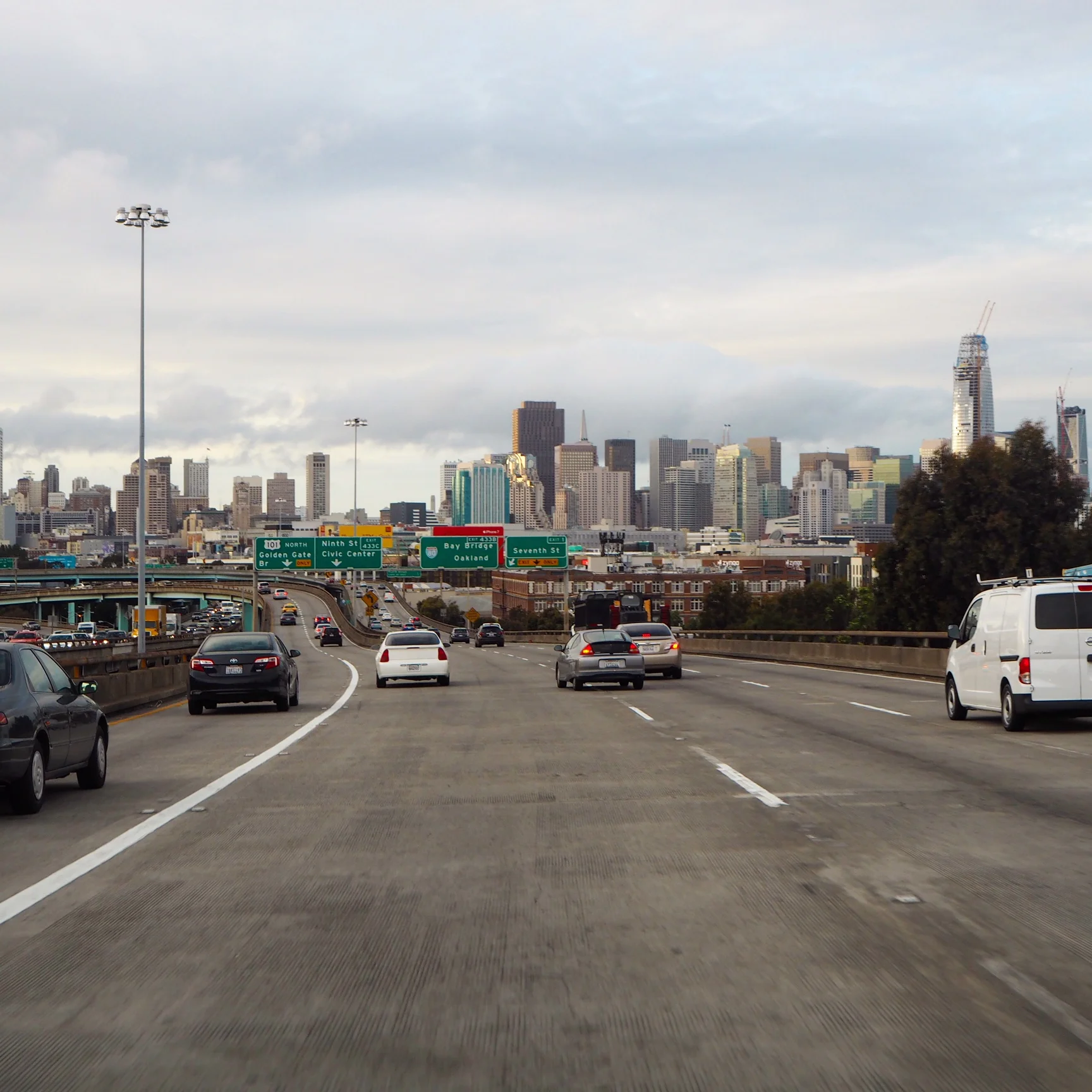 Sutro Bathsilta palatessa kuvasin autosta kun keskusta levittäytyi edessämme.