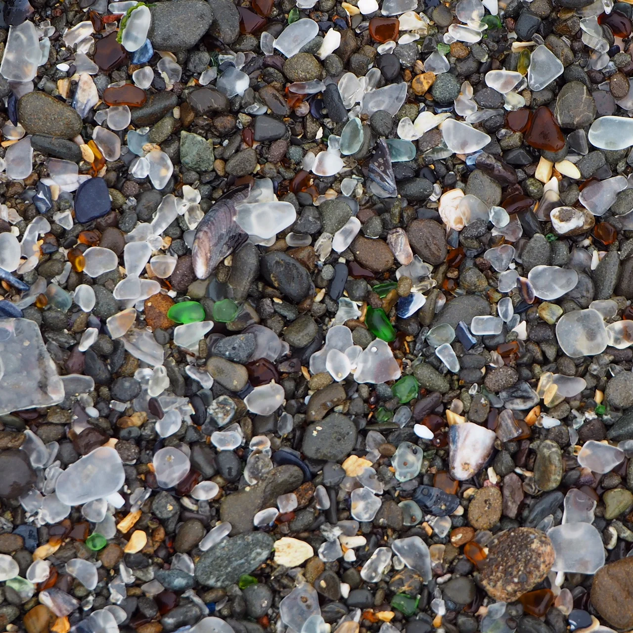 Yksi retkikohteemme oli hieman kauempana. Löysin netistä mielenkiintoisen lasirannan, Glass Beachin Fort Braggissa. Paikka on toiminut ennen kaatopaikkana, jonne kipattiin paljon mm.lasia. Sittemmin luonnon arvo ymmärrettiin, kaatis suljettiin. Meri auttaa jälkien siivoamisessa, ja on hionut ja hioo laseista kauniita kiviä. Sanotaan että rannalle kannattaa mennä aikaisin aamulla, kun meri huuhtoo rantaan paljon kauniita erivärisiä lasikiviä.