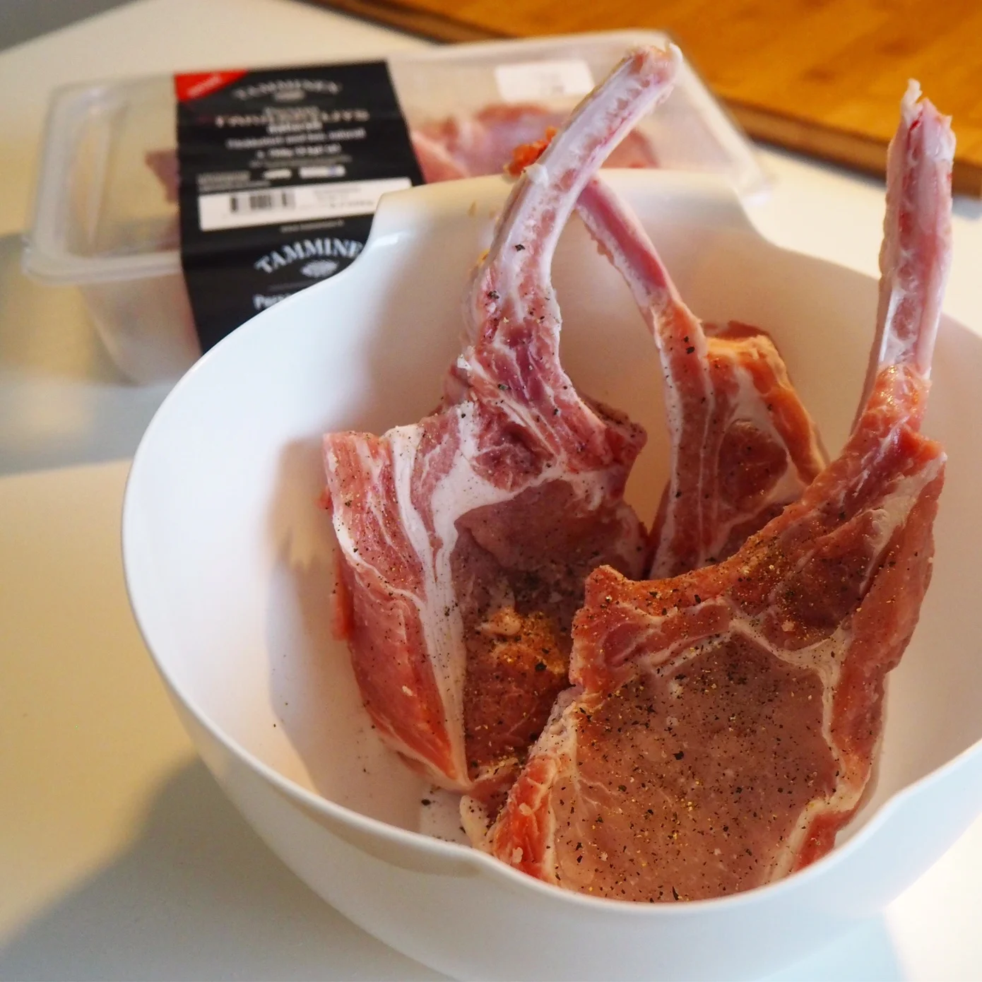 Parilakyljykset on ihan vahingossa kaupan lihahyllystä löydetty. Tykkäämme. Liha on maukasta ja pehmeää. Ja hauskakin, possutikkari.