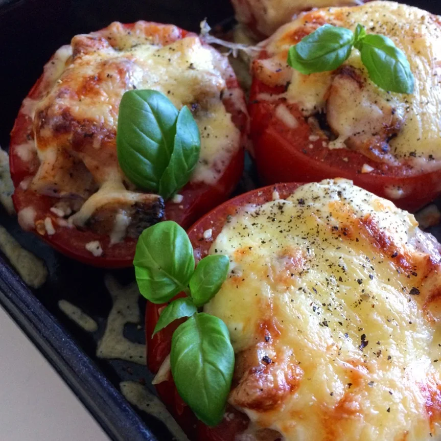 Tomskuihin täytteeksi laitoin loput eilisestä kastikkeesta, fetaa, leftiskasvikset ja - kanat, juustoraastetta.